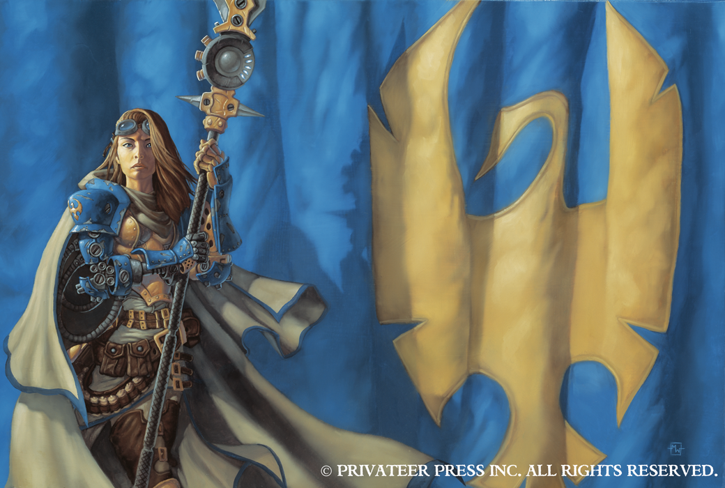 First and foremost are the heroes of the tale: Cygnar’s Major Victoria Haley and her Morrowan ally Constance Blaize, who take possession of the athanc early on but find themselves beset on all sides by enemies who desire the athanc for more devilish reasons. Among them: Saeryn and Rhyas, sisters who serve Everblight, the dragon who seeks to use the athanc to further challenge Toruk the Dragonfather. But they’re not alone in this–the renegade Krueger the Stormlord has his own reasons for getting mixed up in the clash of dragons. The challenge he faces from within the Circle Orboros comes from a high-ranking druid, Omnipotent Lortus, who sees Krueger as a danger to his entire order if he continues his actions.