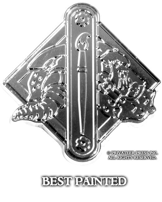 The Best Player award is for whoever earns the most Command Points throughout the event. Command Points aren’t earned just for winning games each round but for meeting special achievements, such as “Destroy five or more enemy models with collateral damage in a single turn” or “Play with a fully painted army” or “Win a game in 20 minutes or less.” You’ll have to be a bit creative with your tactics if you’re after the Best Player award in this format.