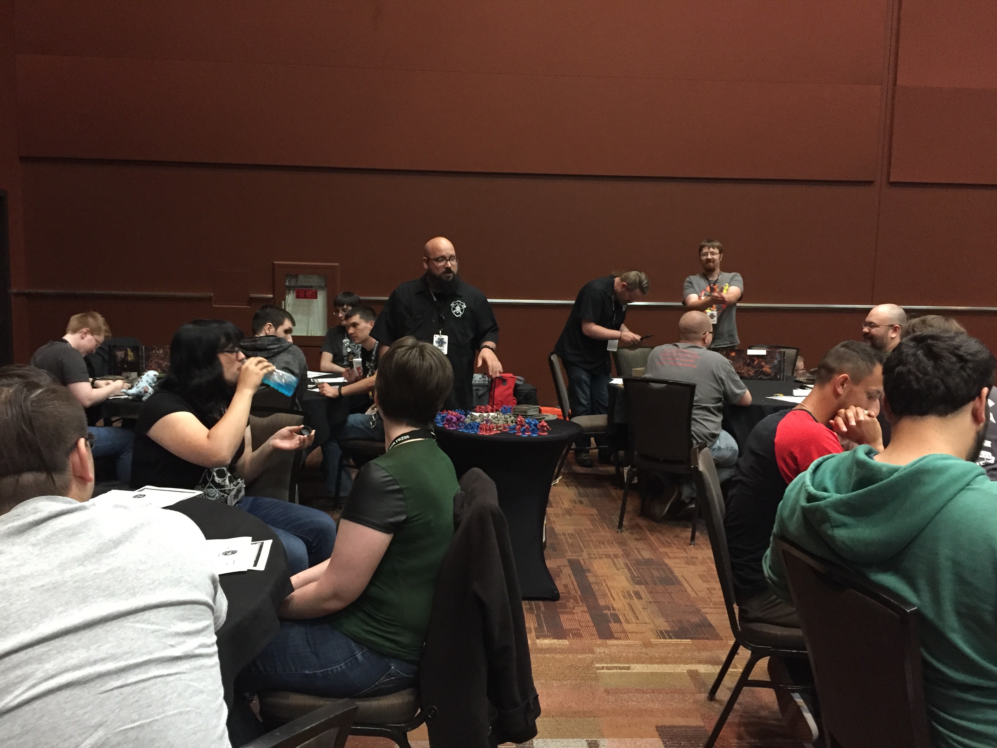 Of course, it wasn’t all just WARMACHINE and HORDES at Lock & Load. Thanks to Writing Manager and RPG guru Matt Goetz and Development Manager and board game master William “Oz” Schoonover, some of the most talked-about experiences happened right beside the masses of WARMACHINE and HORDES action. The Iron GM event was easily the talk of the convention, complete with GMs doing chicken dances, dealing with fish poison, and exercising all kinds of hilarious and impressive feats of storytelling goodness, from gobber accents to on-the-fly bawdy tavern songs.