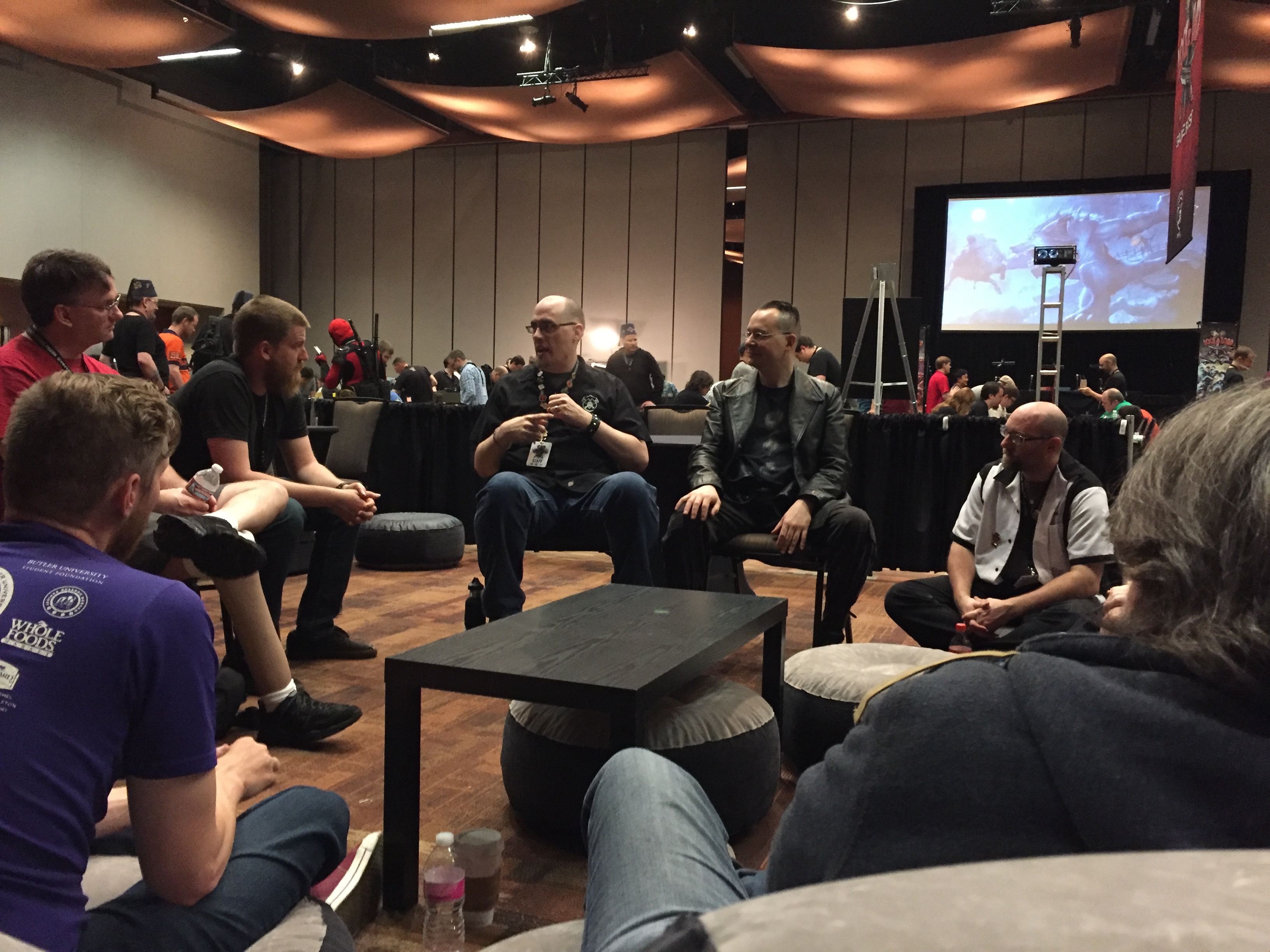 And if you wanted to take a break from gaming, a host of staff hangouts covering everything from game development theory to art creation to taking an intimate tourist-like stroll through the major locales of the Iron Kingdoms was just an inflatable chair away. Here attendees had the opportunity to sit and chat with staff members like Doug Seacat, Matt Goetz, Jason Soles, Matt Wilson, Mike Vaillancourt, Ed Bourelle, and many more in a relaxed roundtable discussion.
