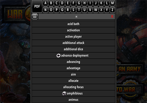 - Go to War Mode: Play games with your device thanks to War Room’s host of in-game features, including damage tracking and army list card viewing. Game modes include Solo, Hot Seat, and Linked Play for online multiplayer match tracking.