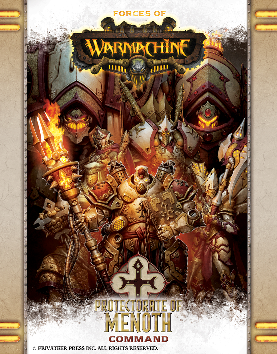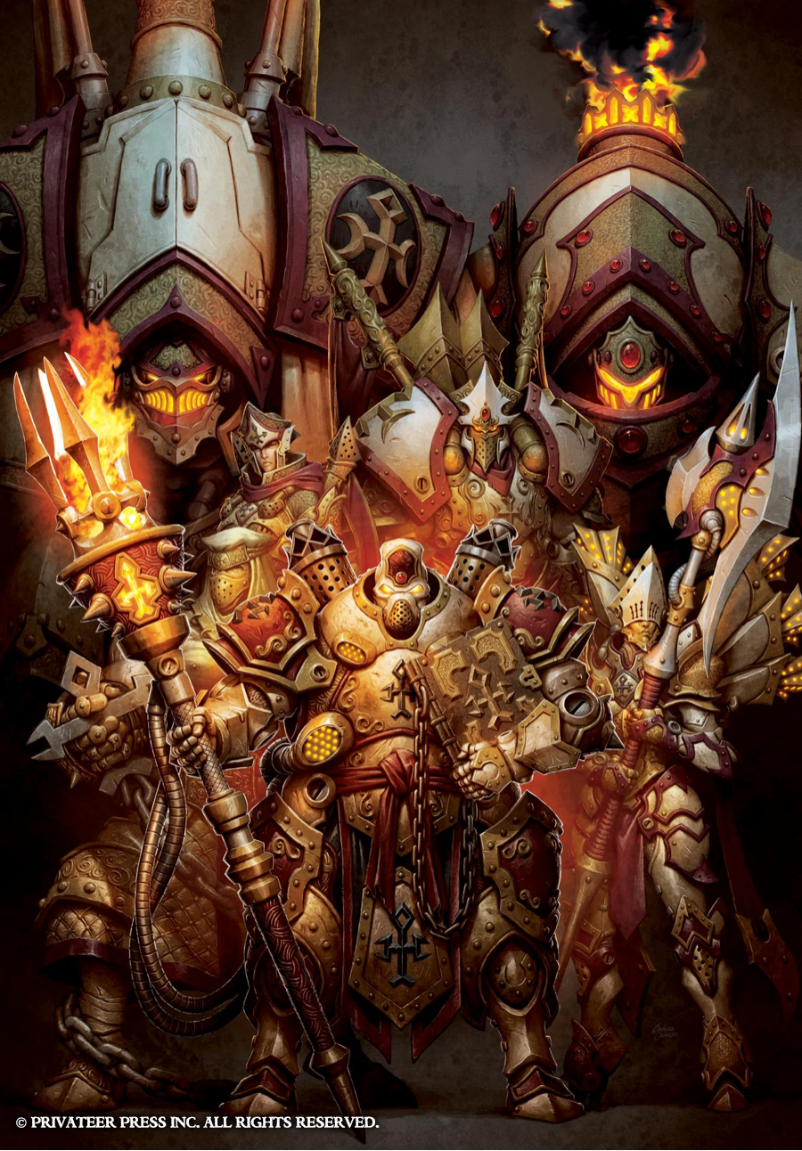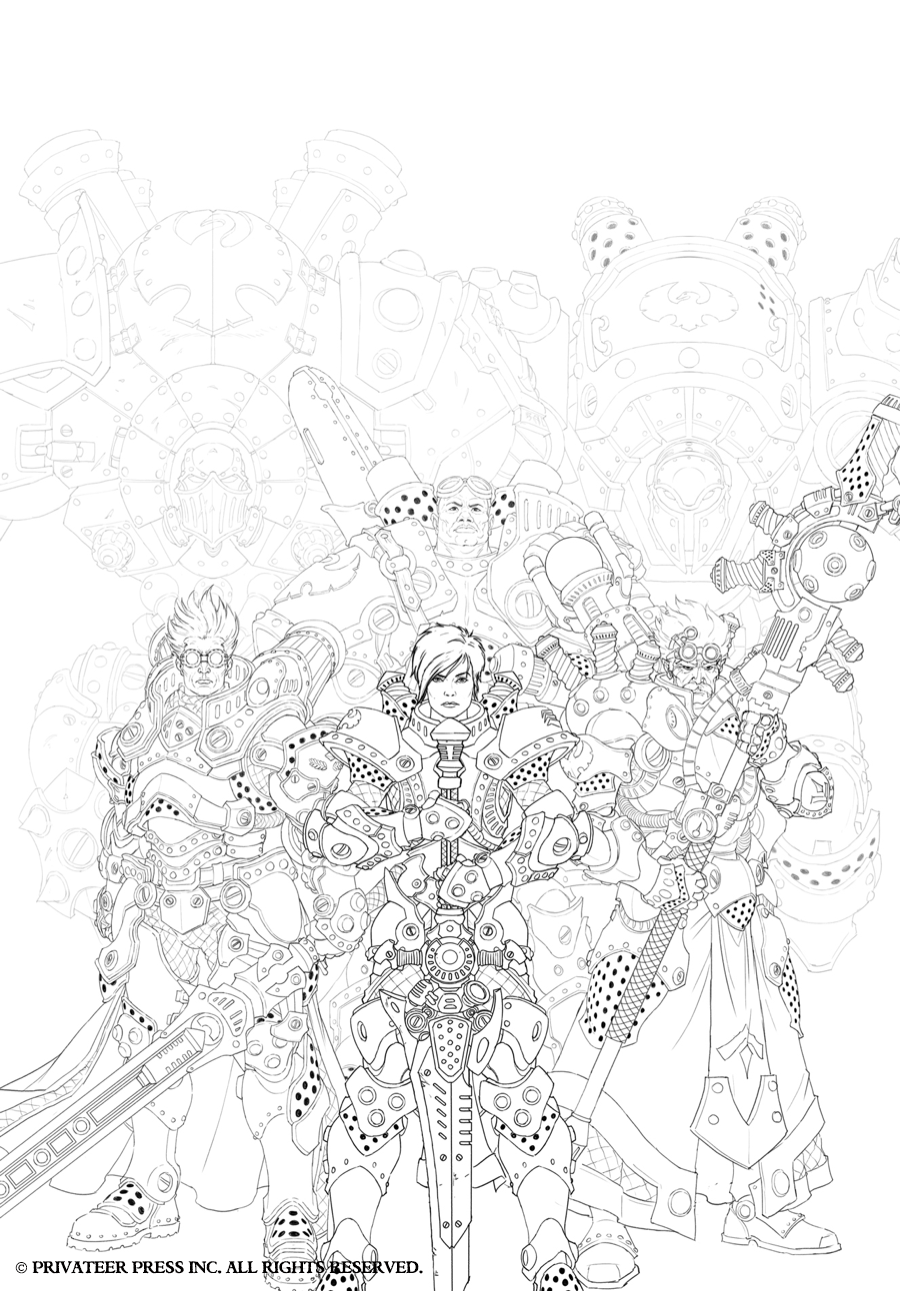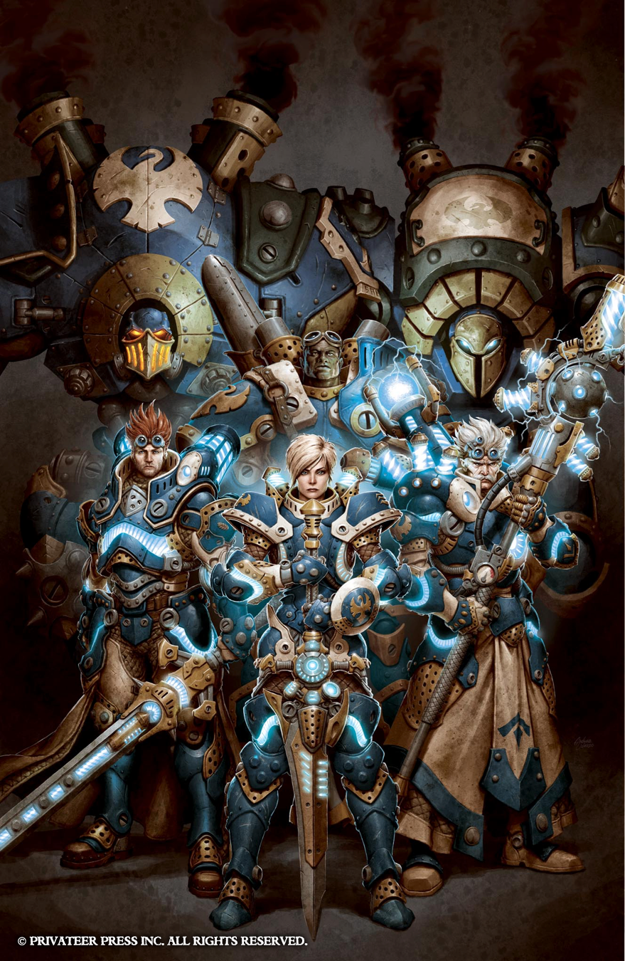 In this art Insider, I’ll do more showing than telling, as each Command book cover is very straightforward. The direction we’ve taken for these books is to showcase our new warcaster or warlock, putting that character front and center surrounded by a few other classic warcasters or warlocks and with a couple of warjacks or warbeasts in the background. The idea behind each composition is similar to that of the wall of heroes visuals from DC Comics’ old Kingdom Come covers in which you get a clear view of several iconic characters.
