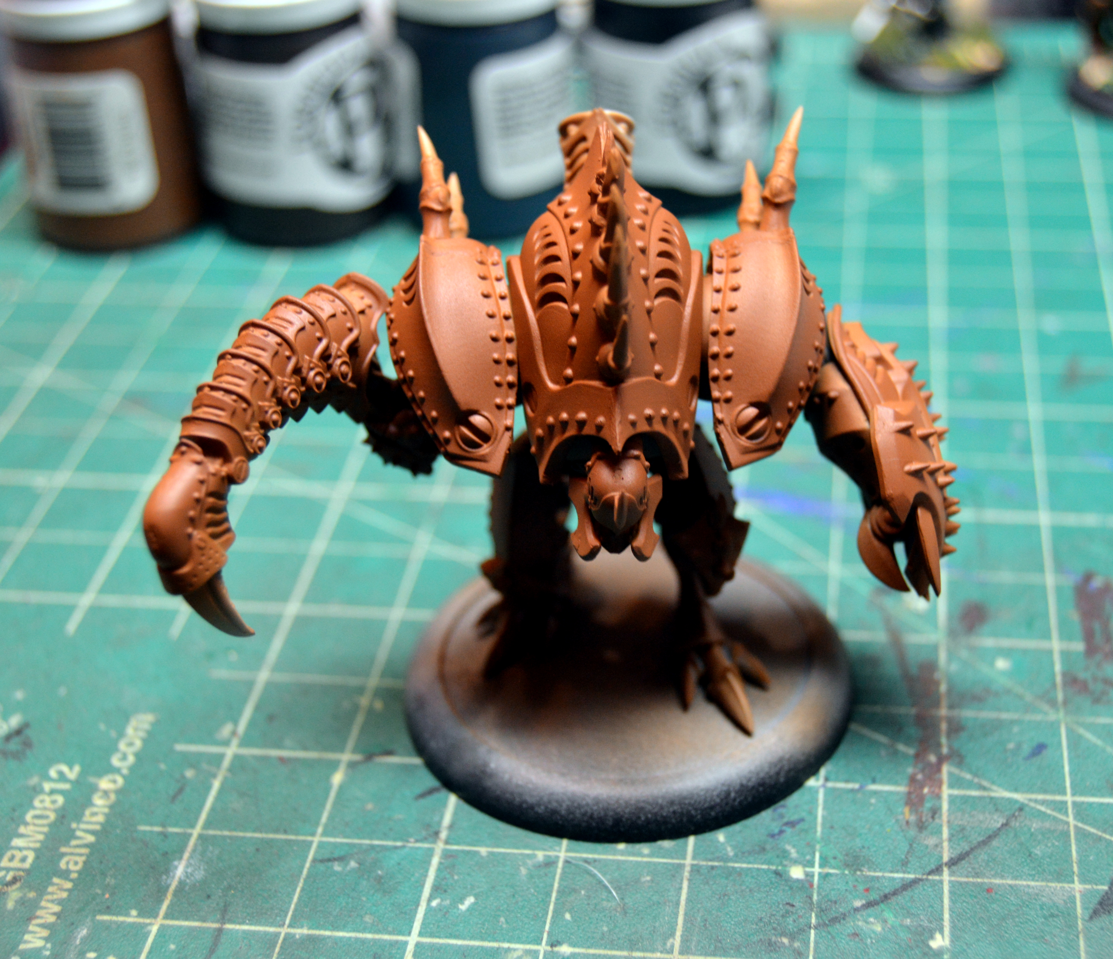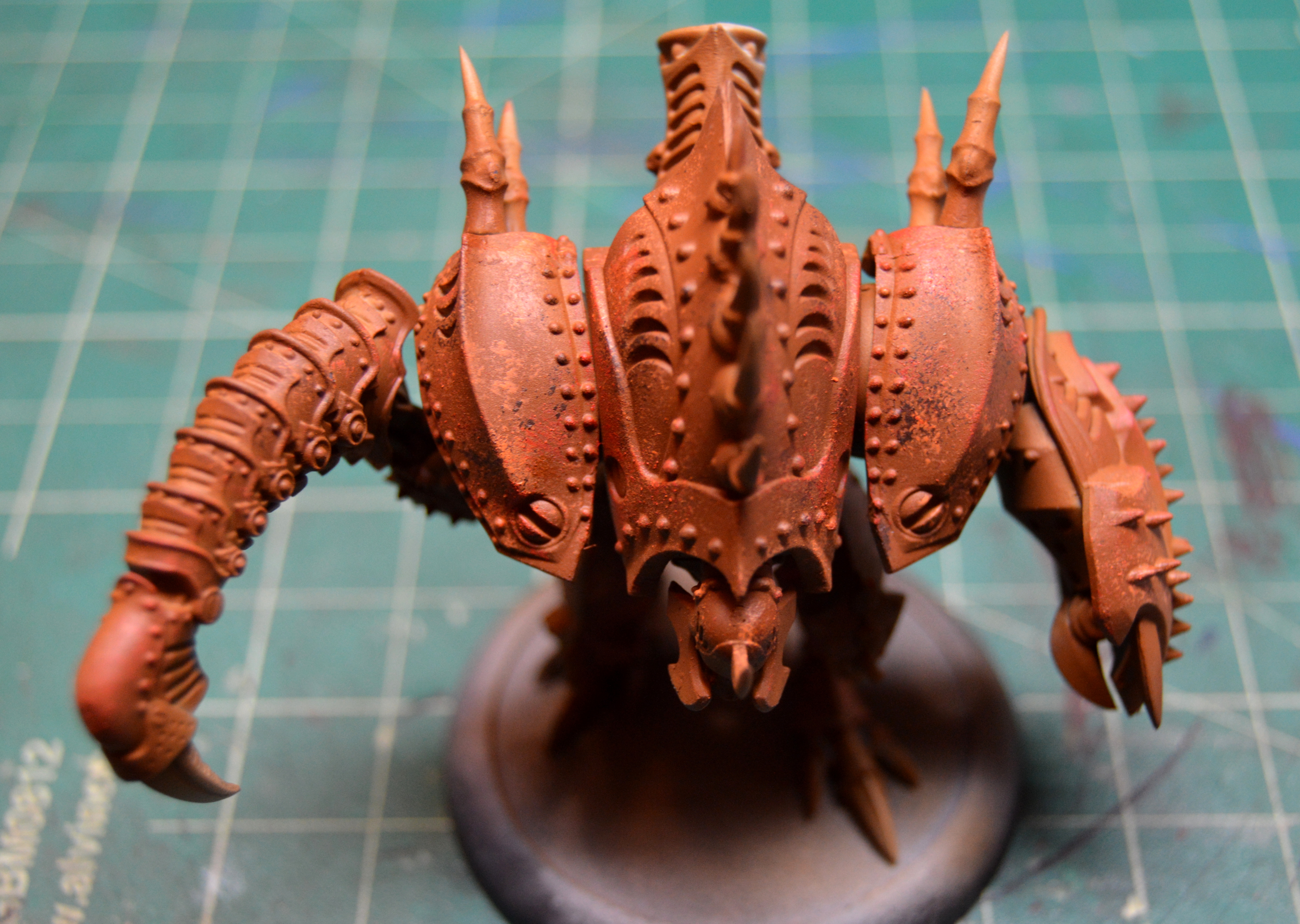 Using the airbrush again, give the Inflictor a solid base of Bloodstone mixed with a little Bloodtracker Brown.