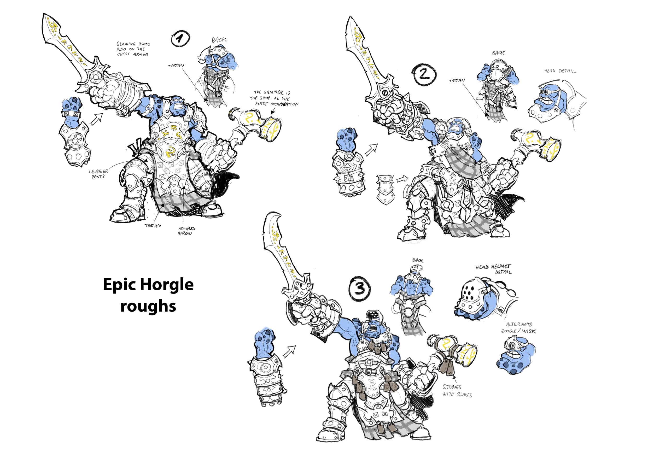 In this week’s Insider we get to take a look at Horgle, the Anvil. Concept artist Andrea Uderzo was tasked with updating Horgle’s original design, taking him from a journeyman warlock to a full-fledged ’caster. Our written description for this iteration of Horgle requested the following changes and additions: