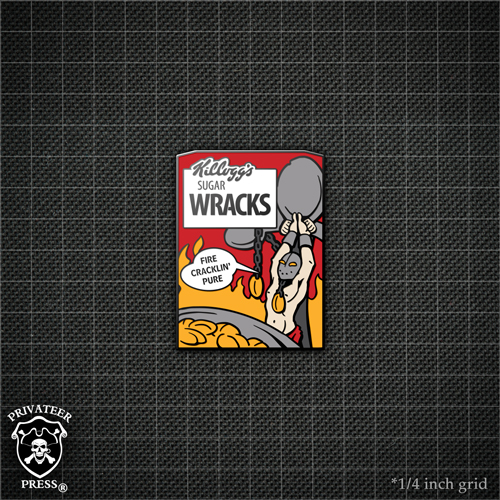 First, the cereal line is fast wrapping up, though we’ve a few killer ideas left to go (that’s a cereal killer joke, in case you missed it). This time, we’re showing some love to the Protectorate of Menoth with Sugar Wracks. If you’ve been collecting the cereal pins, this fills out the Faction needs, leaving us one super-cool uber-cereal pin to go.