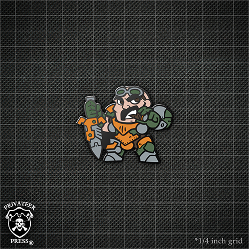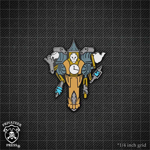 Drake MacBain will be available through the Privateer Press online store for a very limited time and only while quantities last, so keep your eyes open if you want to add this pin to your collection! As for Chibi Big Ben Syntherion…hit up your friends in the UK to pick up one for you at SmogCon! If this pin doesn’t all sell out at SmogCon, you might get a chance to pick up the last of this limited-run pin from our online store! Check back after the con!