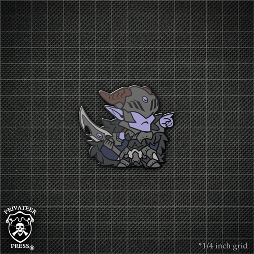 Chibis keep going strong with both Beast Master Xekaar and Kryssa added to the mix. As you might well imagine, Xekaar gave us some design grief in trying to account for his whips, but ultimately, we figured it out, and thus do we expand our Skorne pin collection. Legion gets a nice boost this month as well with the latest warlock, Kryssa, Conviction of Everblight, who’s been featured in many an army since her debut last year.