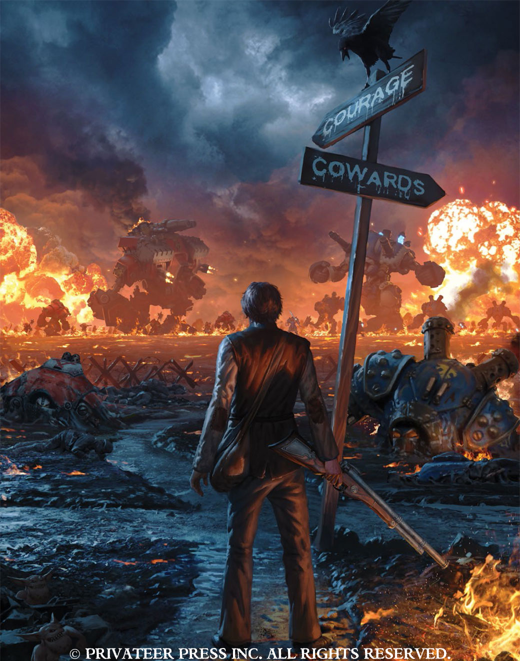 For those following the Crossroads of Courage, you know the fate of Holden is being determined at Lock & Load. We’re creating a massive new table for the event, and the teams of players will be put through a number of tests conjured by Organized Play Developer Will Hungerford and Writing Manager Matt Goetz. This happens Friday and will be live-streamed for the audience abroad. Saturday, Holden’s fate is realized, as Chief Creative Officer Matt Wilson, Concept Artist Nate Feyma, and Staff Writer Doug Seacat host a Design Holden Live Hangout. Everyone at the hangout will get to participate in the creation of a brand-new model based on the narrative league and the results of the event from the night before.