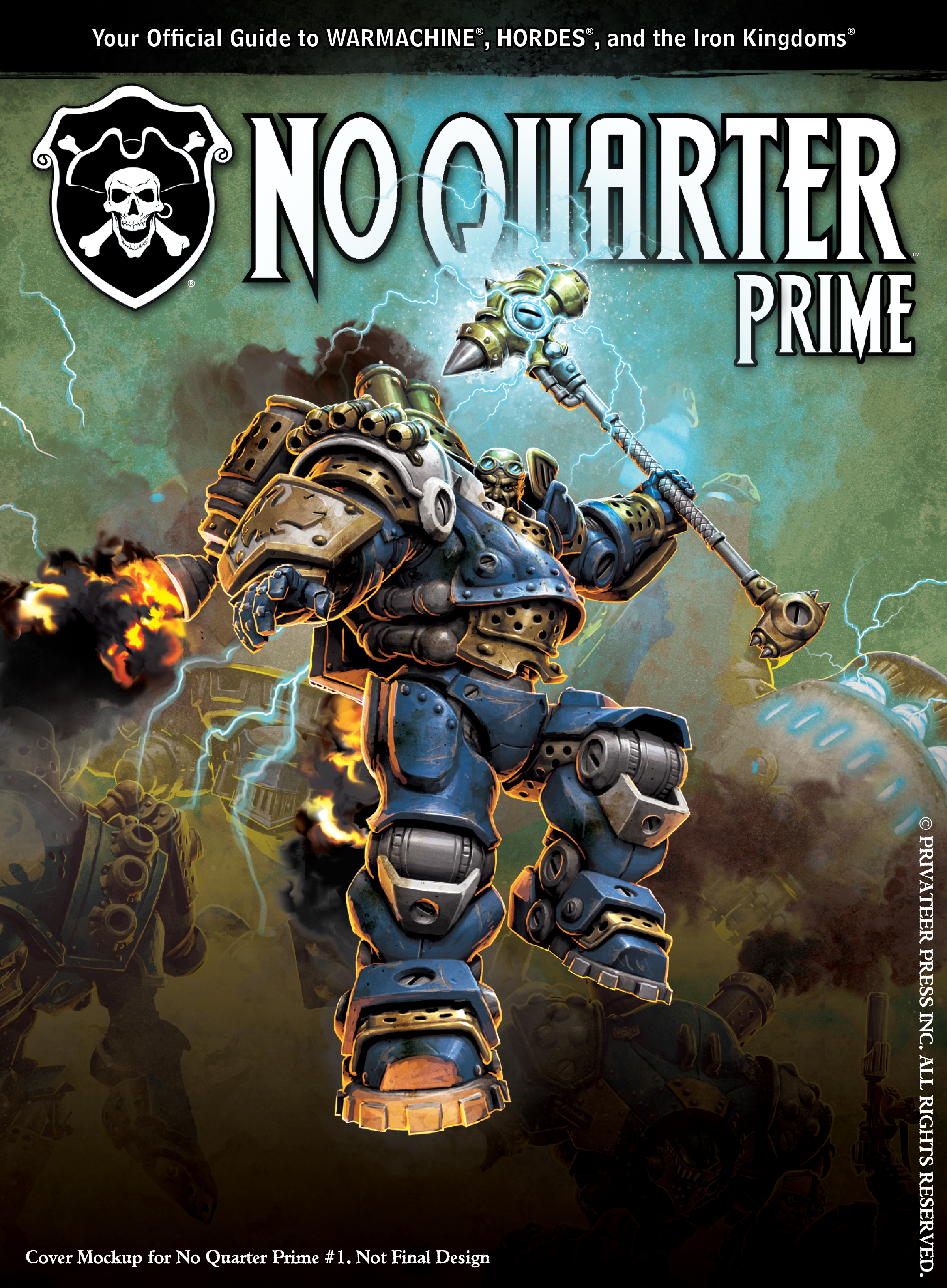 So, beginning in September, No Quarter will become No Quarter Prime, and we’re even beginning the sequential numbering over at issue #1! While No Quarter Prime will continue to deliver game and hobby articles as it always has, this will not be the same magazine you’ve seen before. Every issue is going to be jam-packed with game content you can use on the table right away and rich lore that will expand your knowledge of the Iron Kingdoms. And No Quarter Prime will be completely ad-free, because with all the great content we have planned, we don’t have a single page to spare!