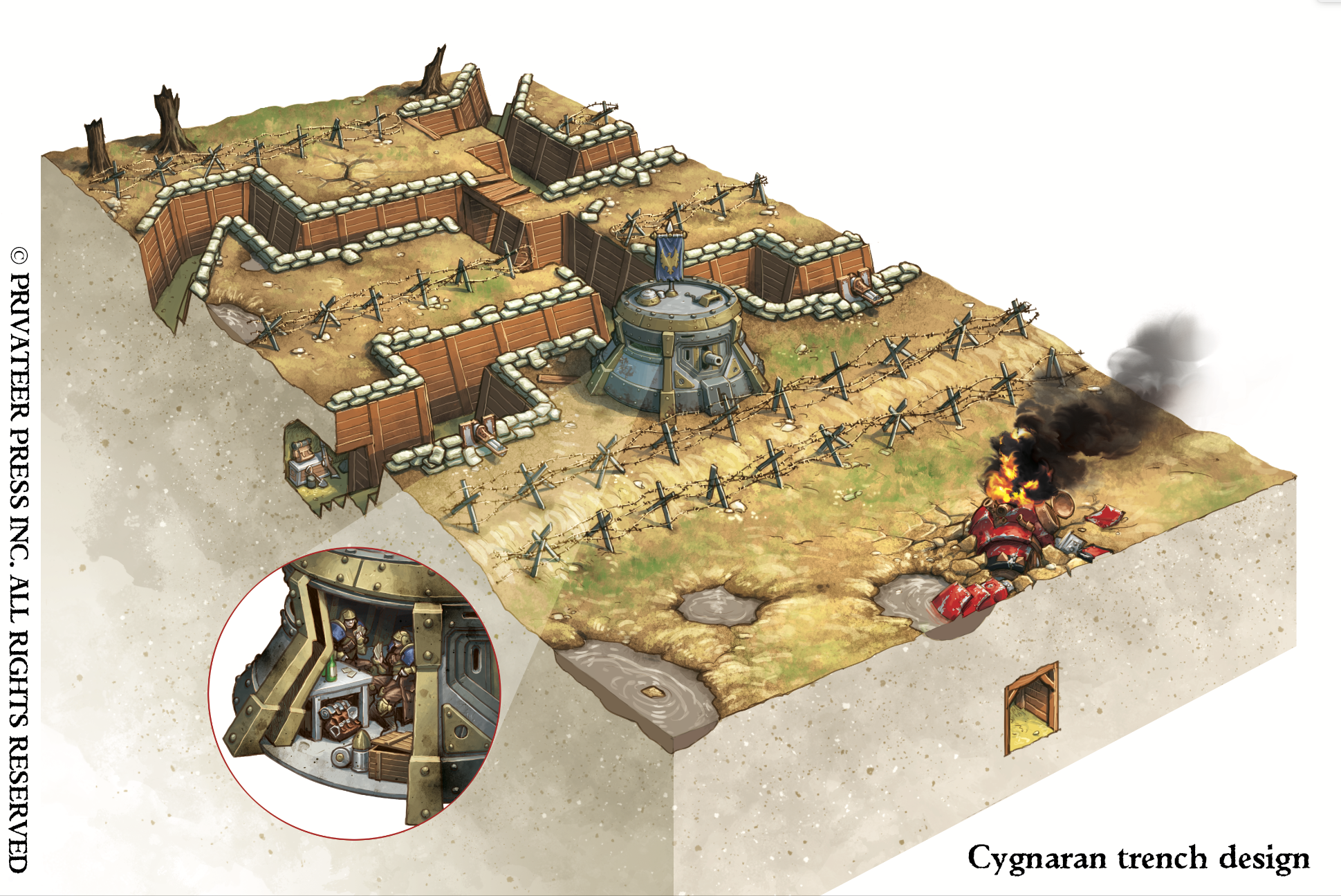 No Quarter Prime will also guide you through a tour of the geography and landmarks of Immoren. In “Hostile Territory,” an all-new feature exploring the iconic sites of the Iron Kingdoms, you’ll find in-depth information on historical battlefields, important fortresses and fortifications, and more. Each article will also feature a multiplayer scenario based on that location, a guide for making battlefield elements iconic of that location, and in-game rules for those elements.
