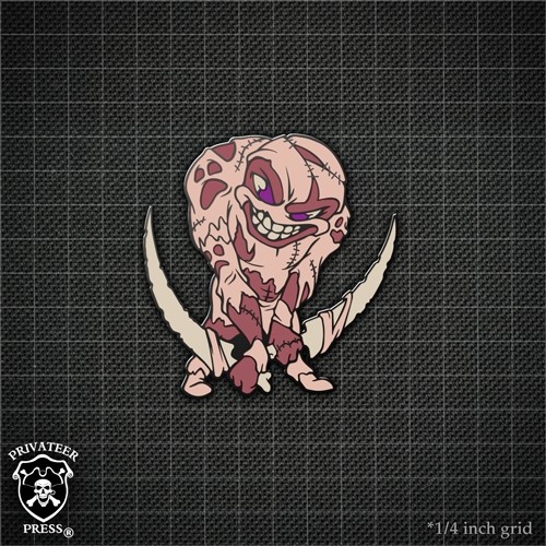 The Grymkin pins are already a wickedly hot property. In addition to the new Faction logo (in all its glorious purple), we’ve added two Chibis to the growing collection of cute horrors: The Heretic, holding up a tiny version of his own face, and Skin & Moans, adorable while wearing other people’s skin.