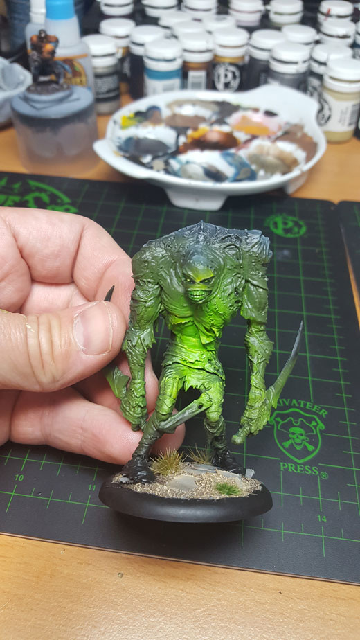 Finally, I gave the green glow a thin glaze of Yellow Ink to give it a sickly feeling, and I based the model like the rest of my army.