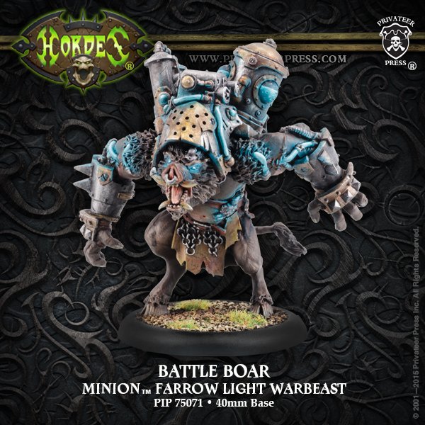 The list I’ve been testing lately involves pushing the damage potential of as many lights warbeasts as I feel I can reasonably run, specifically Battle Boars. With Naaresh’s feat, enrage from Beast Handlers, and Primal, I can get my Battle Boars up to MAT 7, P+S 18, with both Berserk and Overtake. It’s freakin’ succulent!