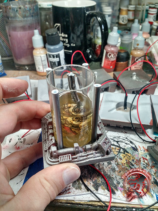 Now, no bio conversion factory is complete without bio-pods! I made a bunch of clear resin-filled bio-pods to suspend various drudges in. These would be all lit up for some nice evil red ambiance.