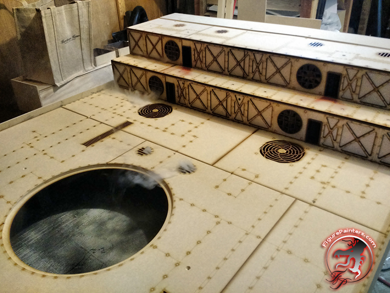Here you can see the laser-cut MDF assembled with some of the additional soda can terrain that helps fill out the empty spaces in the table.