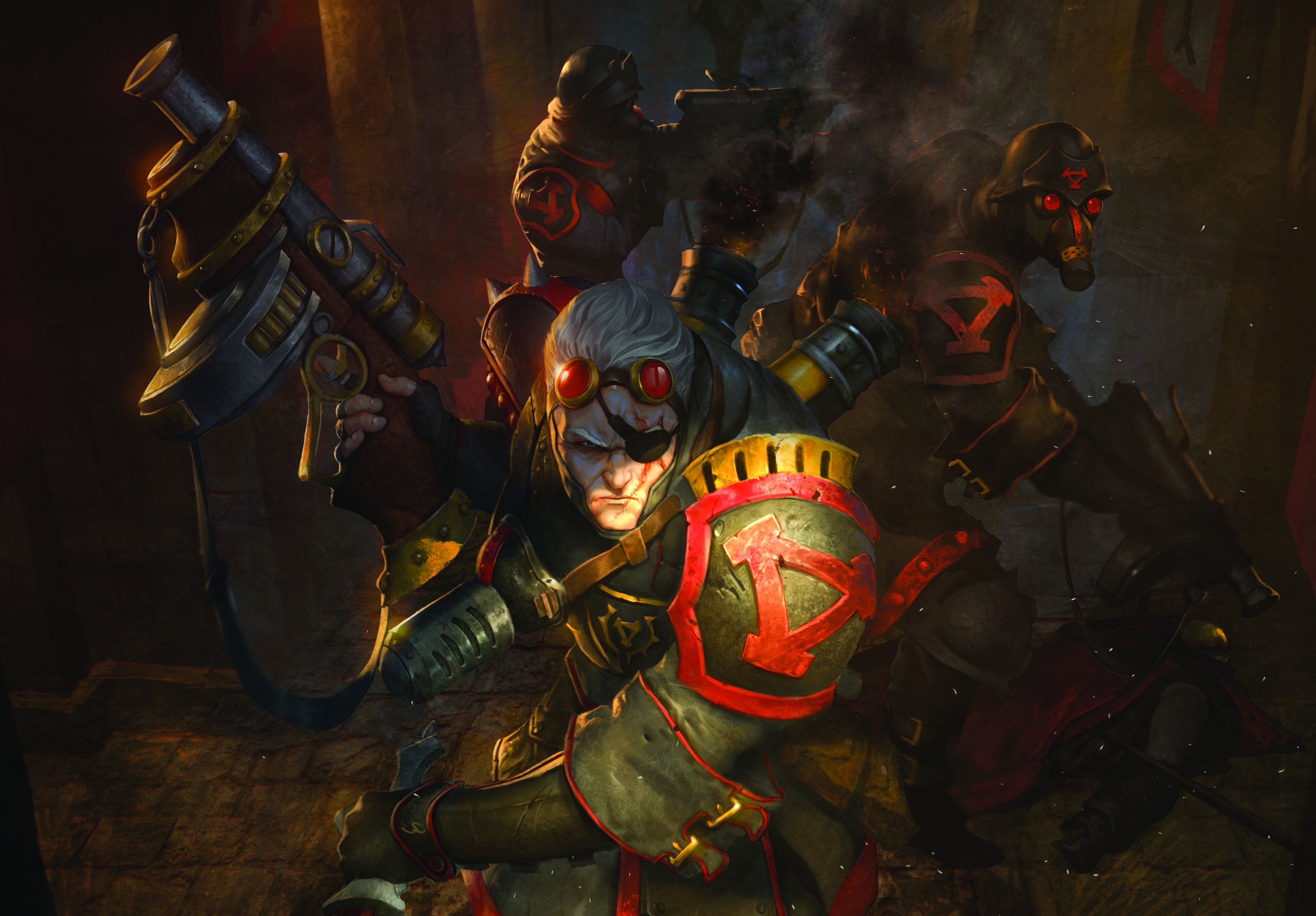 In this darkness, orange bursts of muzzle flare and the cracking of rifles mix with the cries of battle: challenges roared at opponents, screams of pain, the piercing shriek of unseen monsters in the haze.