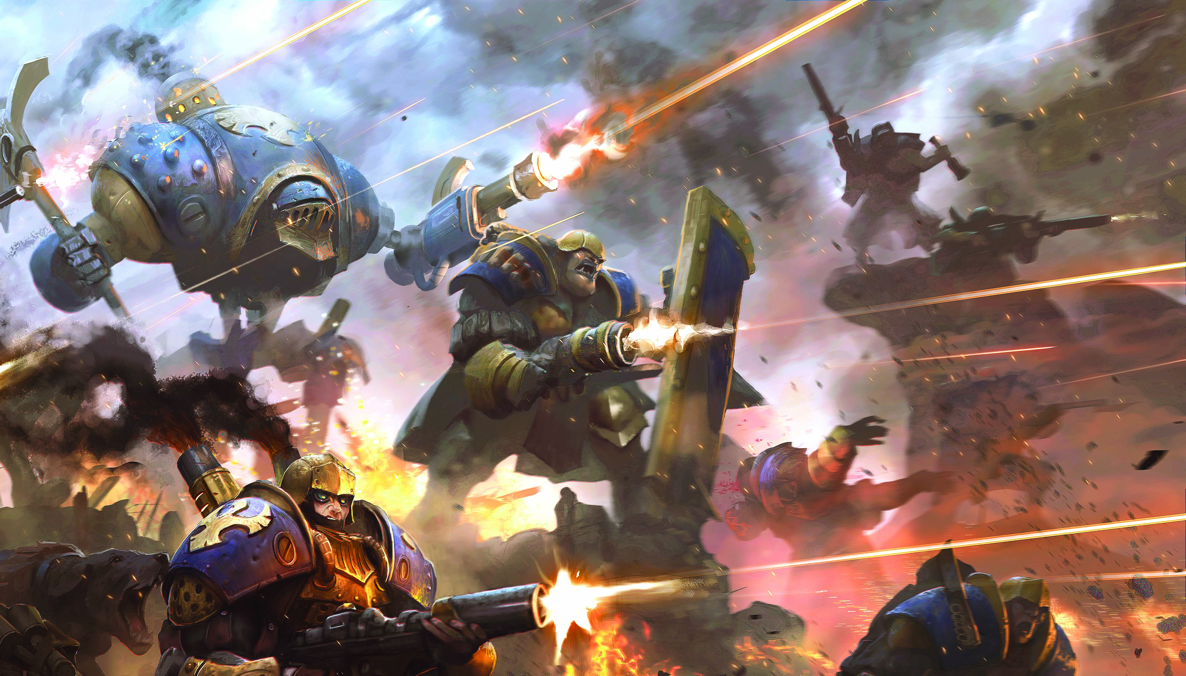 They pushed against a line of horrors with a storm of steel. Rattling sluggers sent lines of fire over the battlefield on the east flank. To the west, Stormblades’ glaives crackled with brilliant blue light.