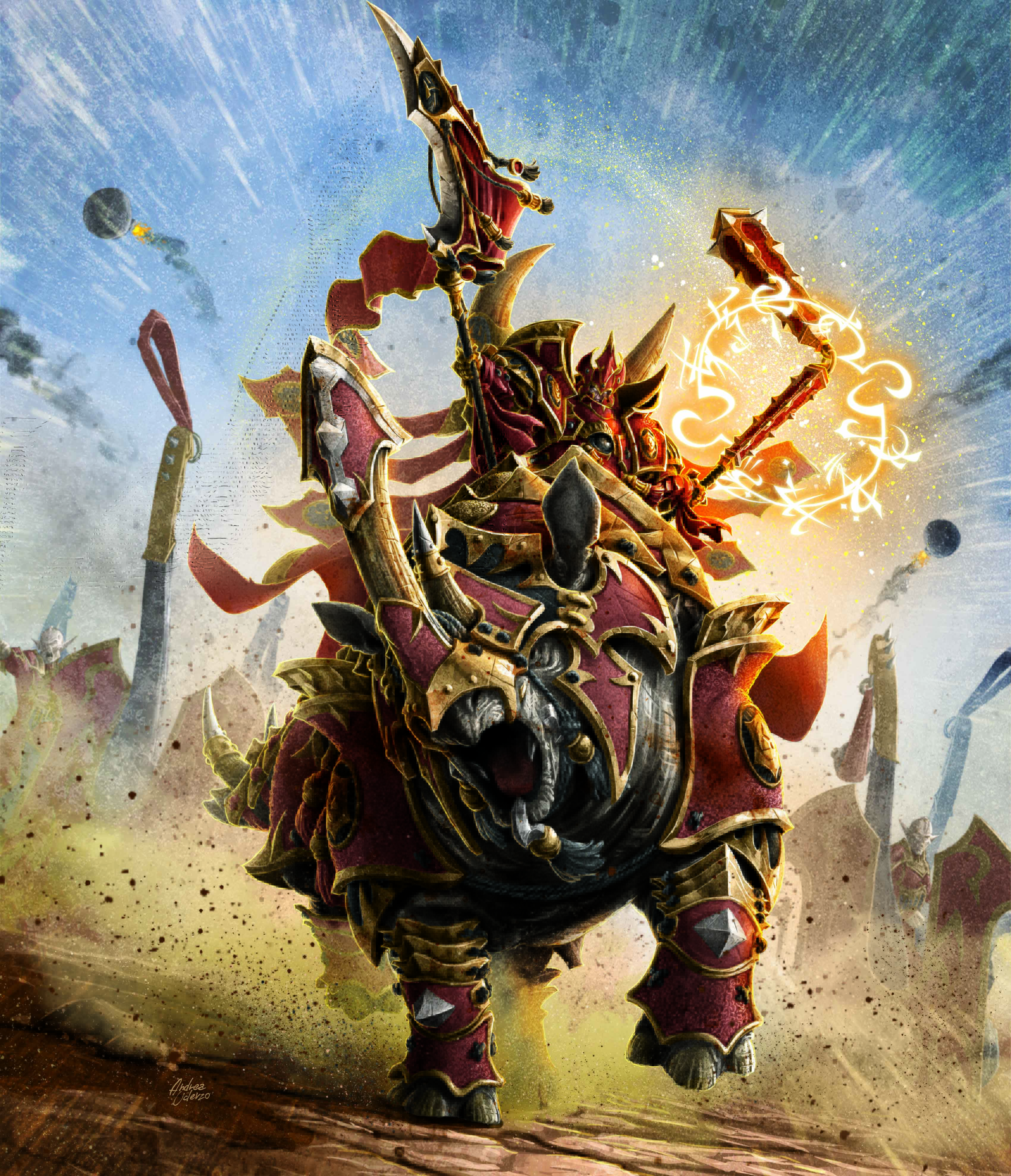 A phalanx of Cataphracts to his right encircled one of this new foe’s great beasts. A creature of blood and bone, many limbed that spewed black blood from many wounds. Xerxis moved his mount to join them, gore dripping from Lamentor.