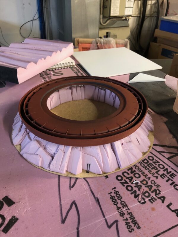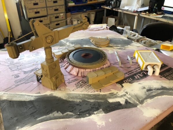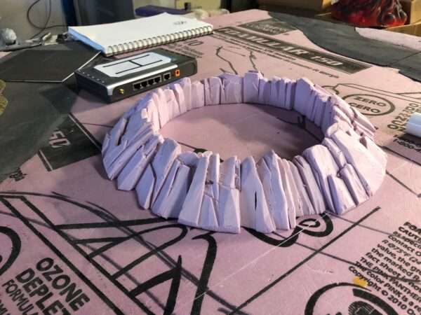 I also began carving the Arc geyser in foam. I used the top of a bucket for the Arc geyser platform.