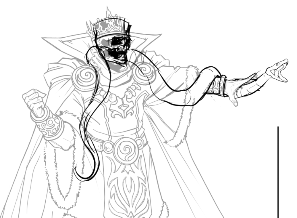 Right out of the gate, we had a working concept, but something was missing. We could give him a dramatic pose, a weapon, or even a staff. Something exciting. In the end, we opted for a snake curled around his neck and down the length of his arm.