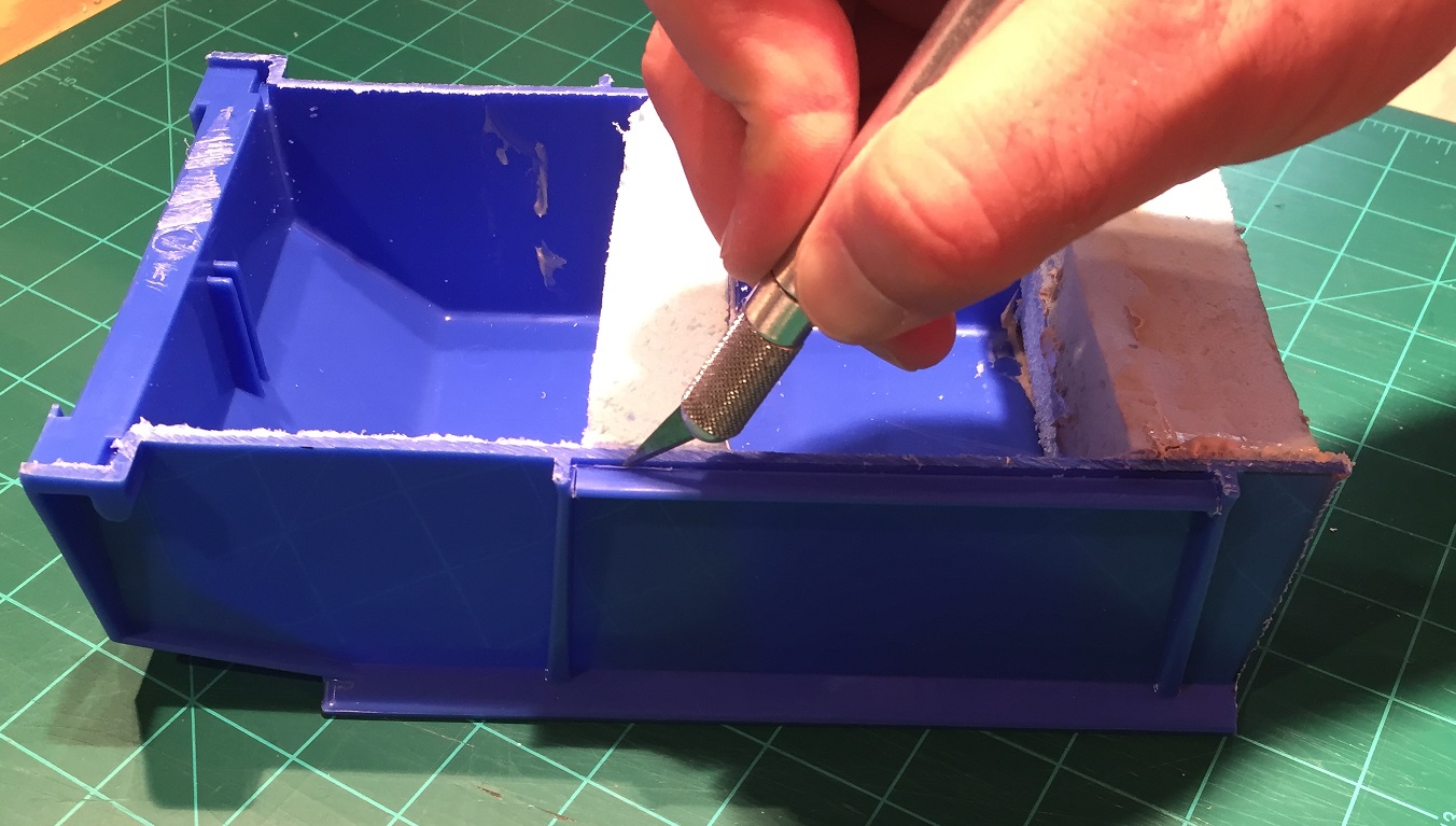 I like using the razor saw to make very precise cuts. I personally find I get better results than when using the snap-blade knife, but both work well. It’s all a matter of which quick tool you prefer! The foam block can be sanded down to fit if you’ve cut it slightly too large. (Sand gently; it’s easy to remove more material than you might realize and go from “too tight of a fit” to “doesn’t touch the sides anymore” quite quickly.)