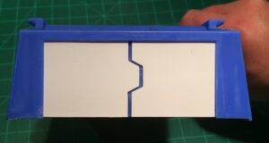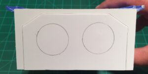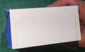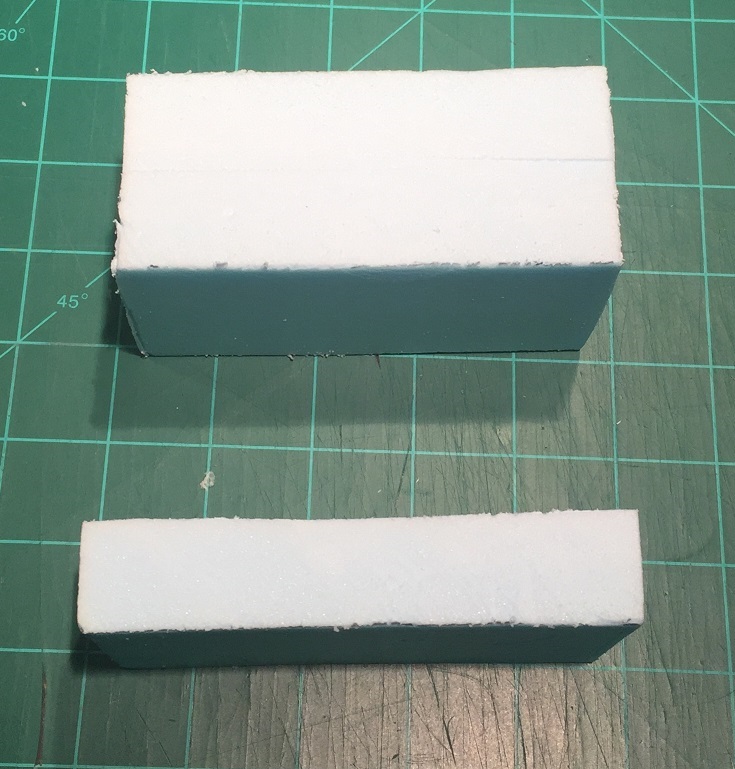 Cut two pieces of foam 4-7/16˝ long by 2-¼˝ in height. The width doesn’t matter too much, although I recommend using at least 1˝ thick foam. The foam provides structural support during cutting and as a base for the rear wall, so it can’t be too flimsy.