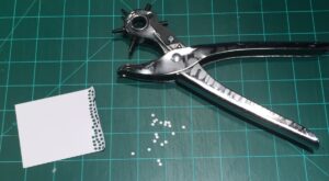 Next. get your leather punch and some styrene scraps. Using the #3 punch, punch out approximately 168,000 circles. Or at least four. Four is good. Four is the minimum.