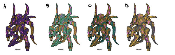 This, then, became the master color palette for the Empyreans, but we wanted to age it, add some more purple, and dirty it up. And with that, we had our final color palette.
