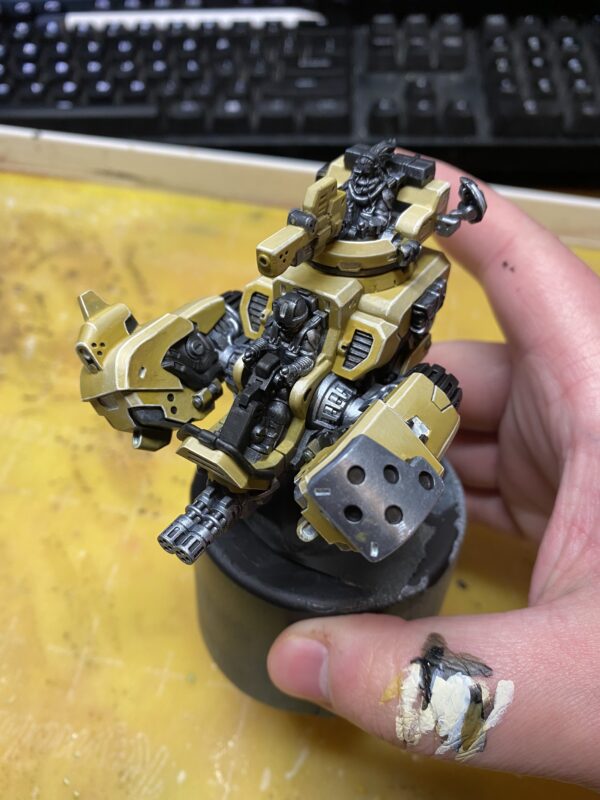 For this step, I drybrushed one layer of Boiler Black and a highlight of Cold Steel over the surfaces that would end up being metal. As always, I tried to avoid as much over-brushing into parts that aren’t metal as possible, but it’s not a big deal if you go a little overboard.