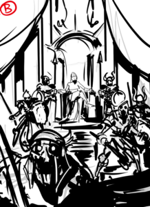 With that description in hand, Carlos was off to the races producing thumbnail sketches!