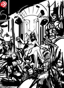 For Alexia’s outfit, she should be unarmored. She’s been sick for months under the care of Morrowan sisters. Likely, she’s returned to her white frock but maybe has the leather duster over it. She should look somewhat disheveled, maybe like she just threw these clothes on. Likely she’s barefoot. She’s not equipped for battle, in other words, but she should also look like that doesn’t really matter to her—she’s still going to kick your ass. I’m kind of looking for a cross between the original first cover and the second, but with that “King Conan on the Throne” vibe.