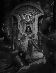 …the color to the scene. The piece has now come to life, but there were a few things I didn’t think were quite working with the lighting. I requested that the god light in the middle of the scene gets toned down, have the edges tightened up, and finally asked that he work back in some more contrast in the shadows on and around Alexia.