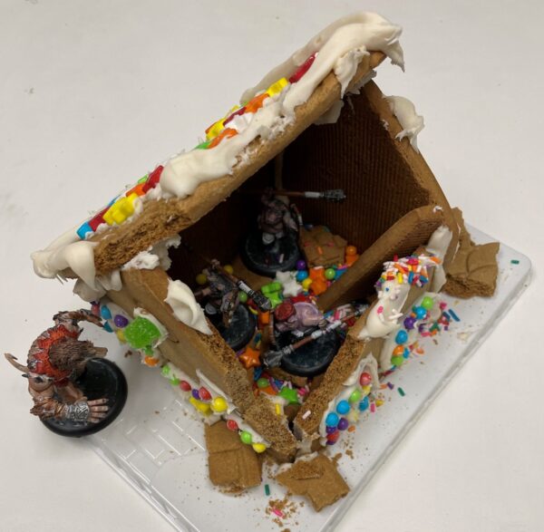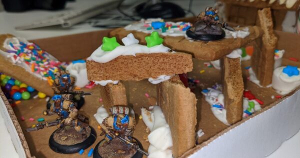 I’m not sure if the troops got hungry or if artillery has been hammering this house, but here we have some Gingerbread Ruins. Good for taking cover under…or for a quick snack!