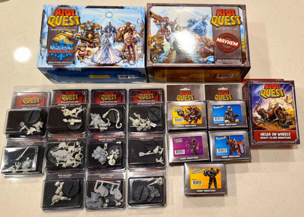 Having only returned to the fold of Privateer in the past month or so, the two games in the office I really haven’t had much time to play or get involved in have been Warcaster and Riot Quest. Yet since Warfaire Weekend back in November, I have had only one thing on my mind: Riot Quest! When I’m not playing it (and sometimes even when I’m working), I’ve been thinking about it. What models do I want on my team? What Riot Gear do I want? How often can I get people to stop by for a game without crossing that line of moderation?