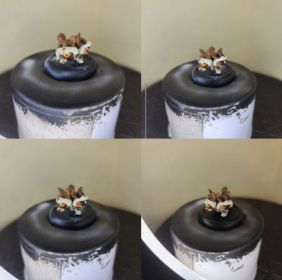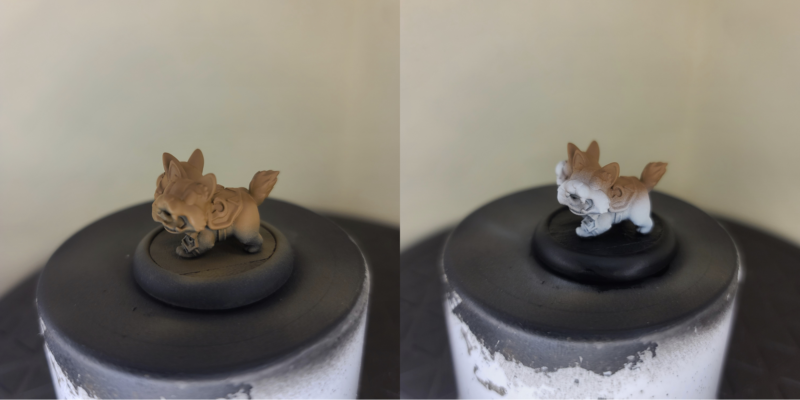 Step 1) I really like corgis, but sadly my dog allergies will forever prevent me from having one as a pet, so here is the opportunity to add one to my mini’s collection. I start by mixing an even amount of Bloodtracker Brown and Rucksack Tan and airbrush this color across the top of the model.