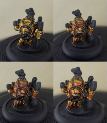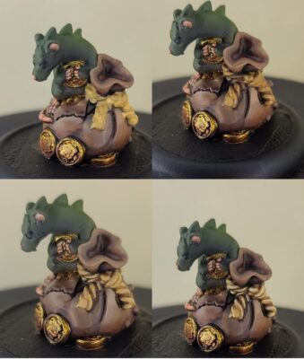 Step 1) Just like the gold coins on the Devil Rat, I create a solid basecoat with multiple layers of Rhulic Gold.