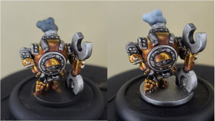 Step 1) Since we’re going for speed today, I will cut some corners and keep the white metals pretty simple. I start by using some Pig Iron as a basecoat.