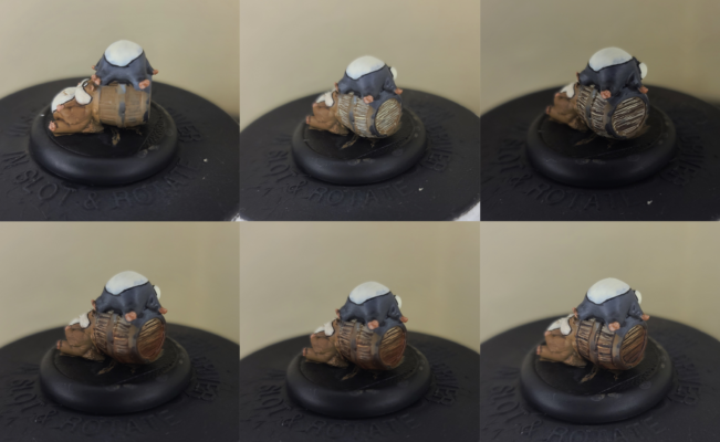 Step 2) For both Skiggs, I airbrush Menoth White Highlight on the stomachs and cheeks, going for that small rodent look.