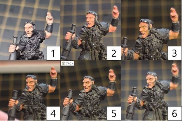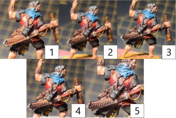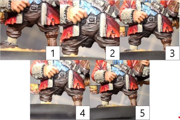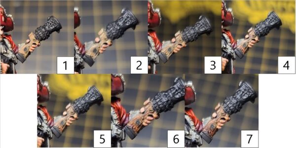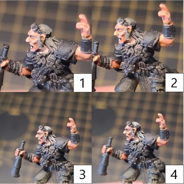 - Step 5) For the final highlight, I’ll return to the area after the model has been sealed with matte sealant and apply some final edged highlighting with Quick Silver.