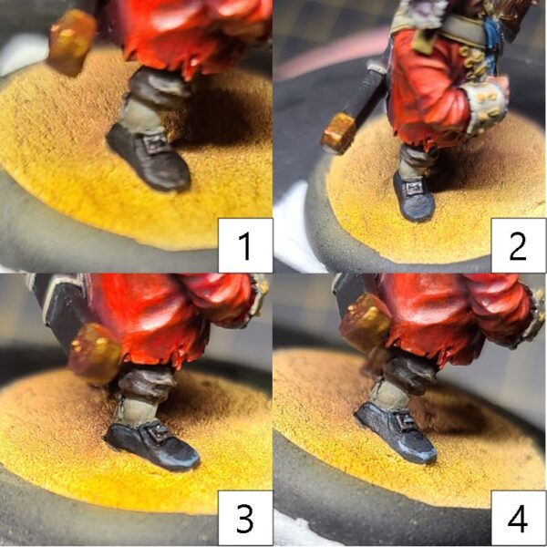 - Step 4) Finally, to finish off the shoes and our Rockbottom model, add Frostbite to the previous mixture and carefully use this to put some edge highlights on the shoes.