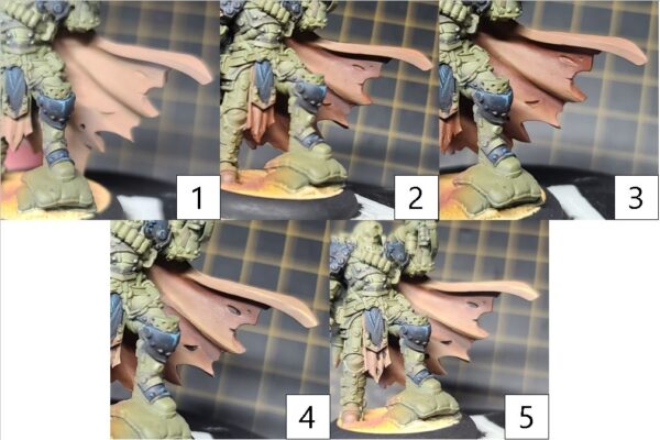 - Step 3) For my final shade, I mix Idrian Flesh with Umbral Umber and blend this into the deepest areas on the cloak.
