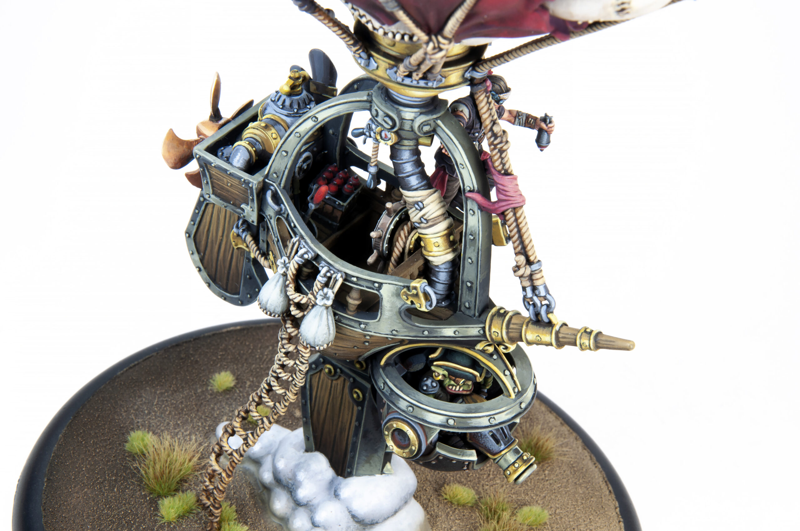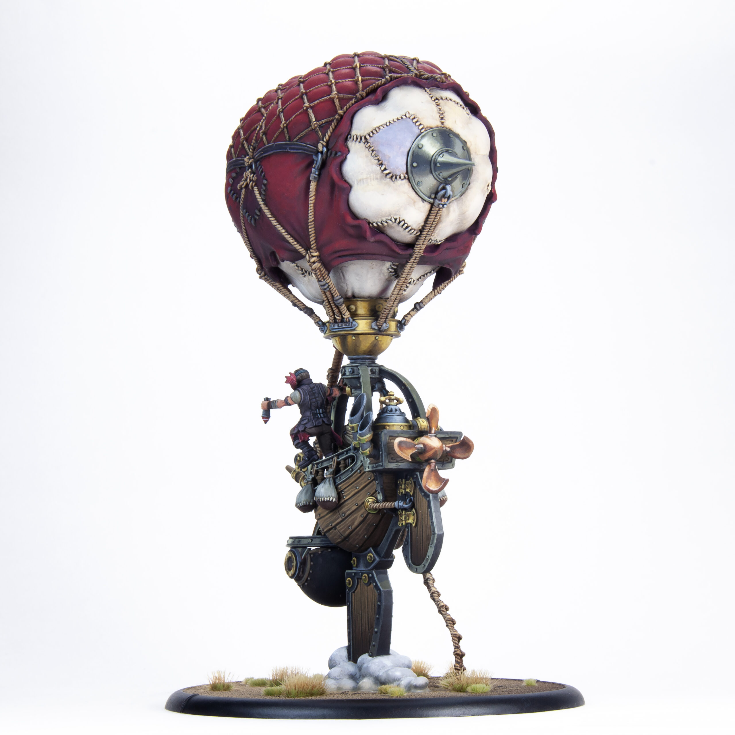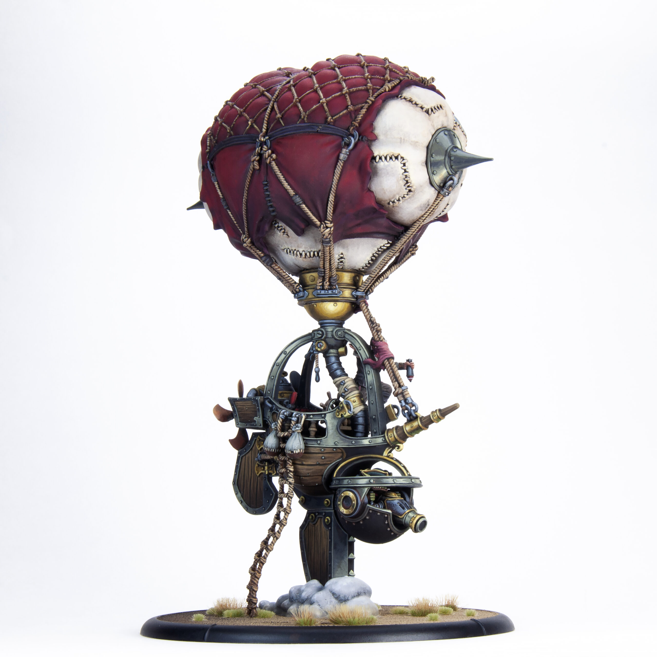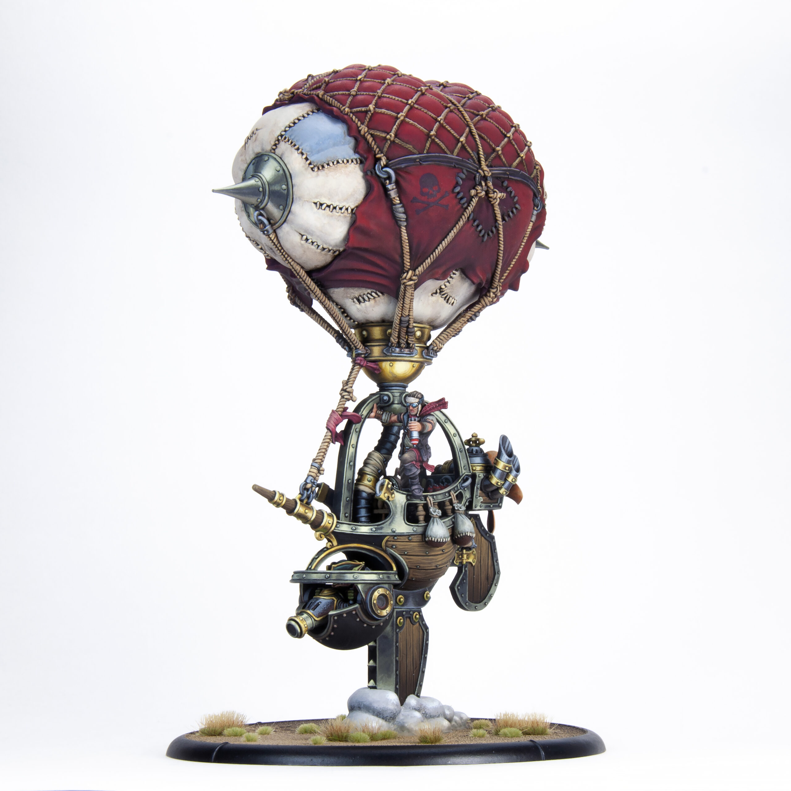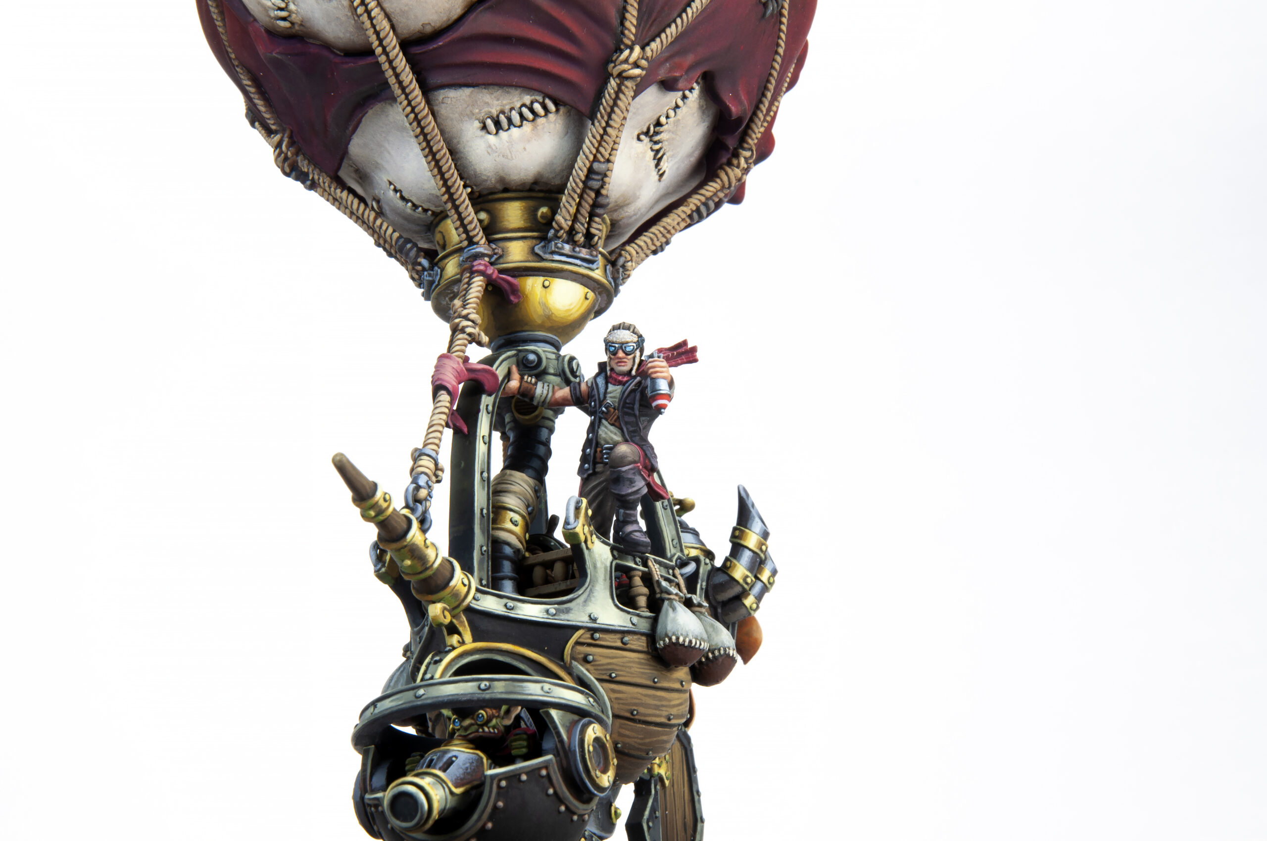 We are pleased to reveal today a Black Anchor Heavy Industries project that has been in the works for a very long time—two projects, technically: the Mercenary Sky Raider and Sky Bomber battle engines. These large and highly detailed models were a challenge to engineer, but in the end, thanks to additive manufacturing techniques, each one is only eight or nine pieces, depending on which class of airship you prefer — there’s the balloon with a cap on each end, the hull and keel, and then your pilot, turret, and either a rope ladder or a pair of bombs. Easy breezy! You’ll find they are quite easy to assemble while still feeling sturdy once mounted to their 120 mm bases.