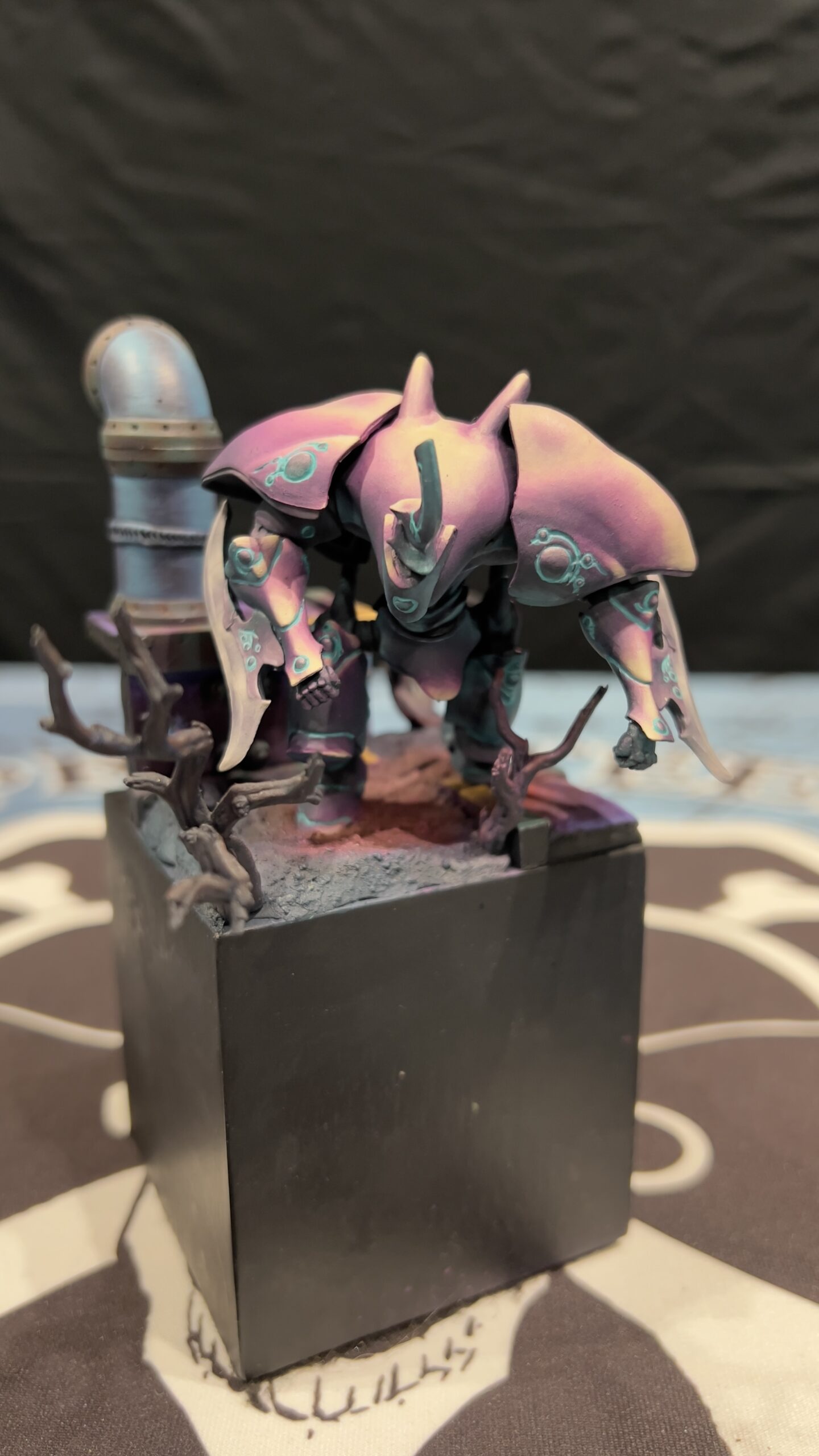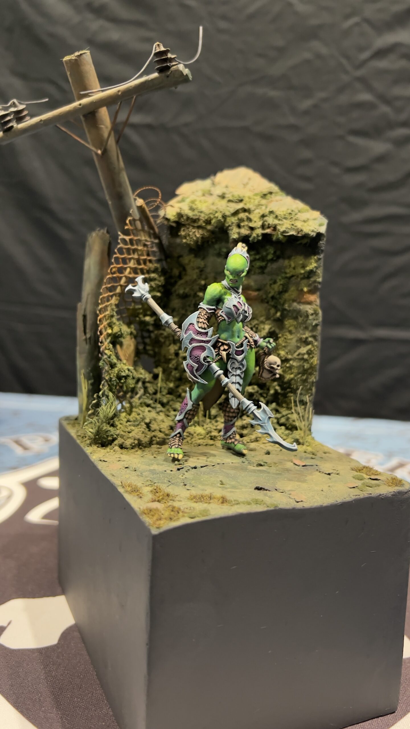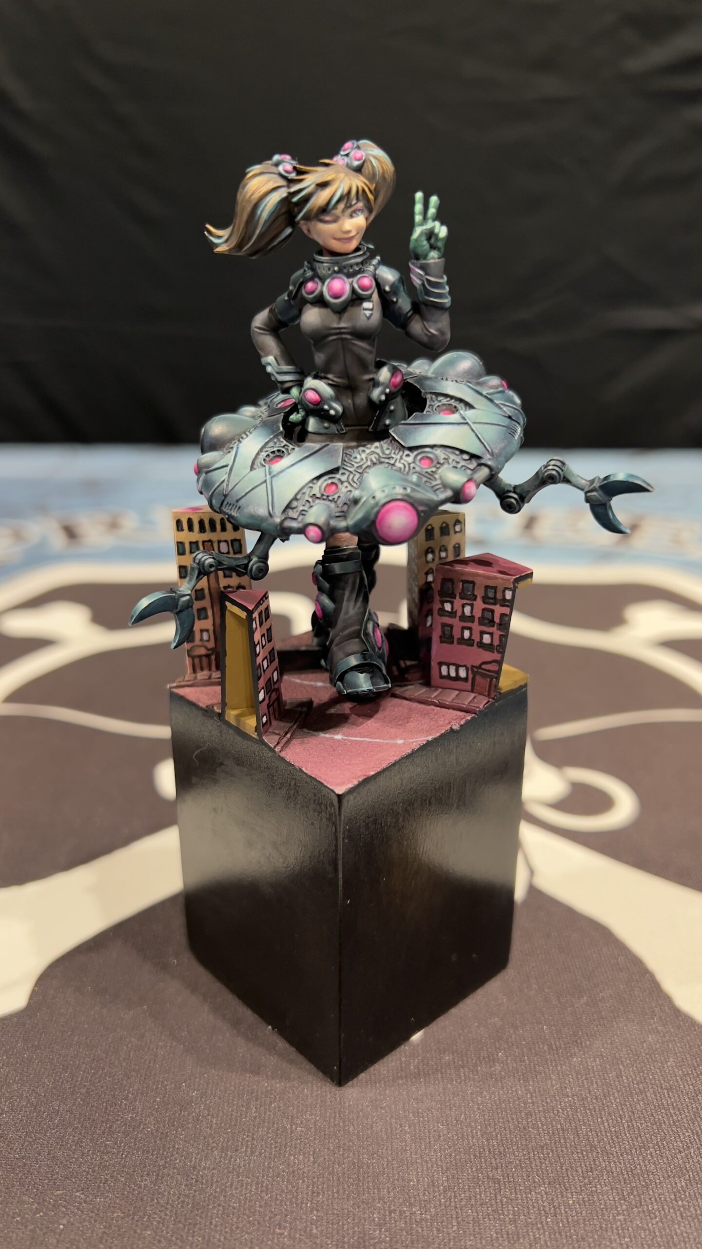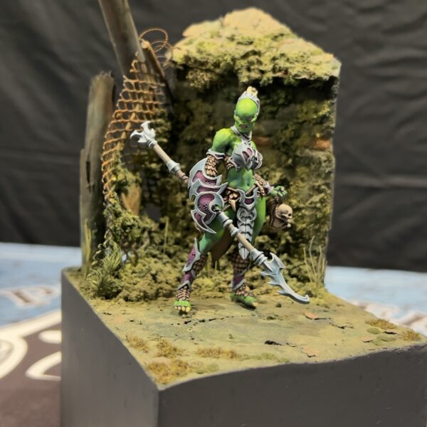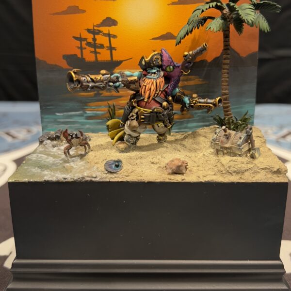 Sam showed great skill in multiple mediums with this work—from the painted background, the skilled construction of the basing that perfectly frames the model, and the paint job itself. All of these things came together with an eye for composition. In a sea of strong competition, I found myself returning to this model again and again. Great work!