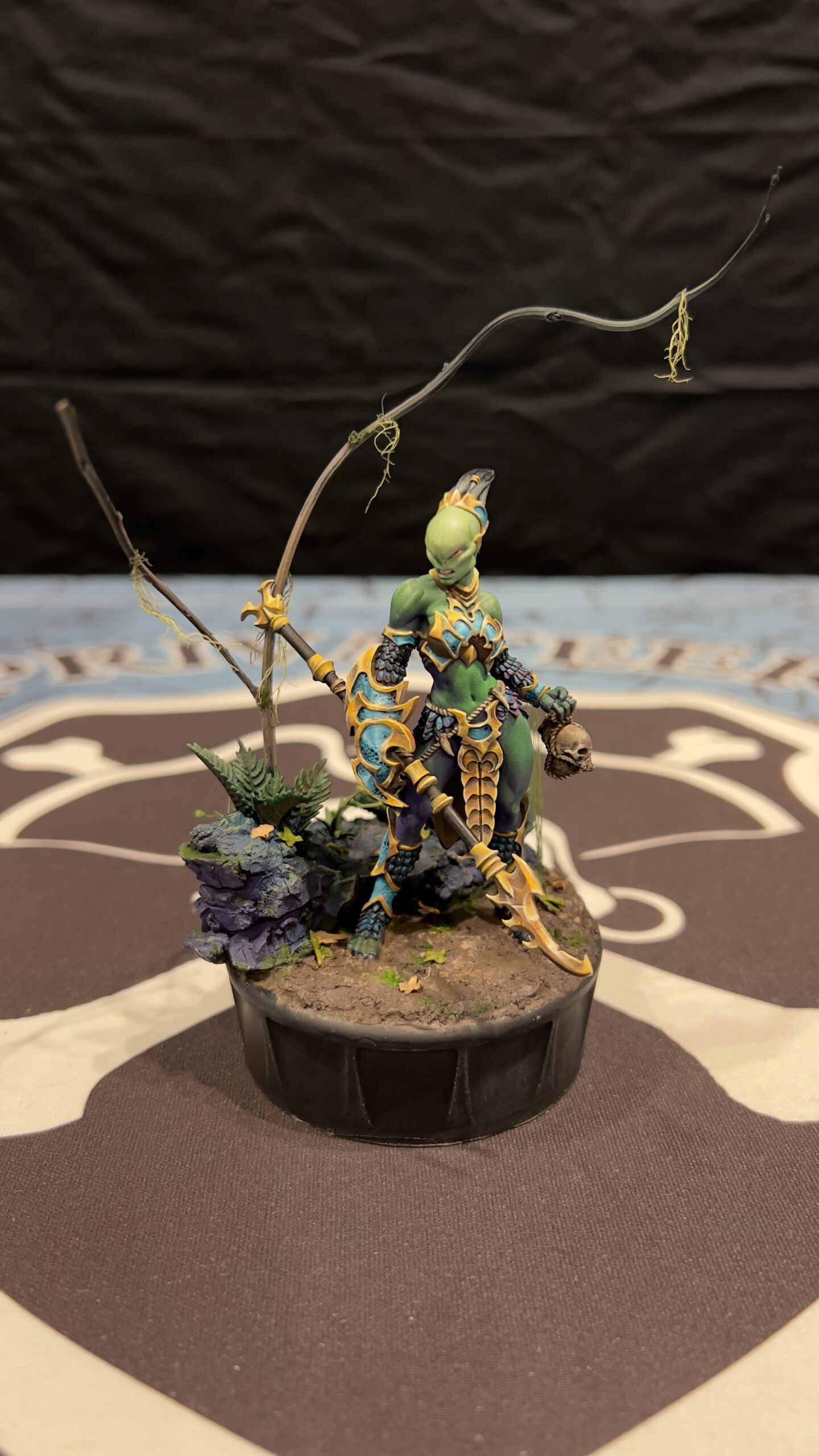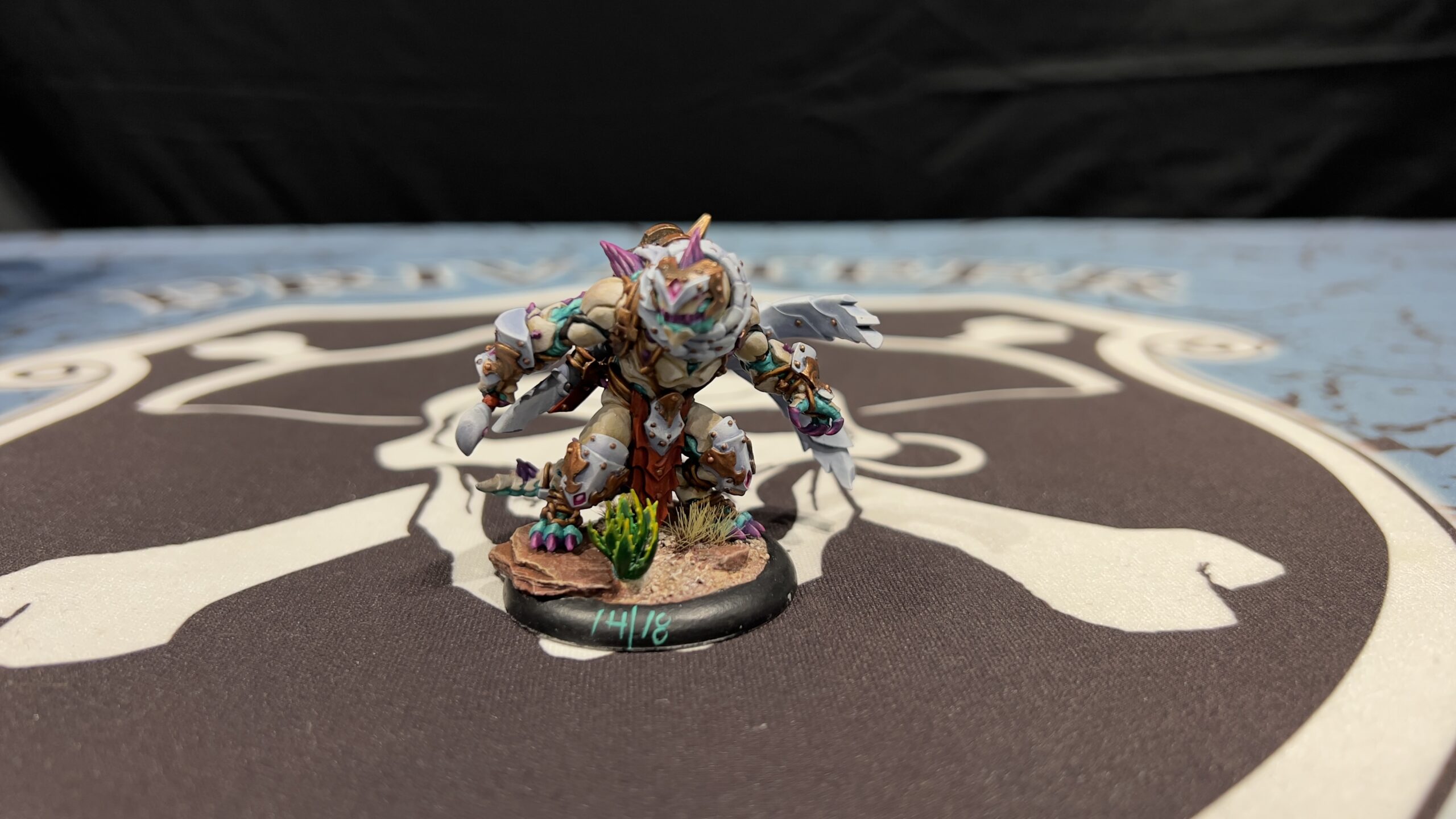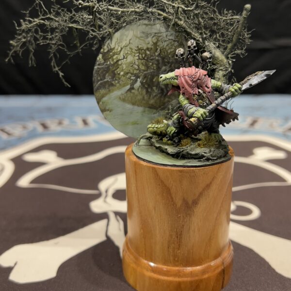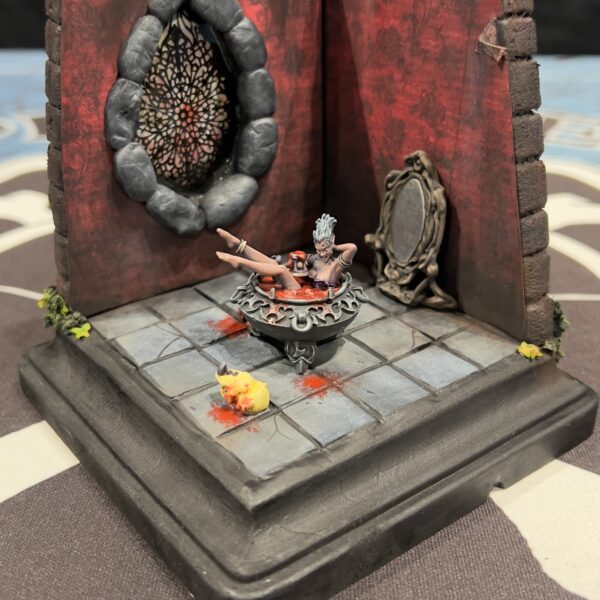 One of the fun aspects of judging the P3 Grandmaster Painting Competition is that recognition coin. While there are not specific rules for it, I have my own parameters that I apply when picking a model. This year, I picked out a handful of models that I liked the most and then took on the difficult challenge of narrowing it down to one. This year, Zambies Decays created a very atmospheric piece with what felt like a scene from a dark and scary movie—complete with blood on the floor, a shadowy feel, and a seductive villainess waiting in the middle…of the tub. So, after applying my very strict parameters, I selected the Blighted Bather as the recipient of my recognition coin!