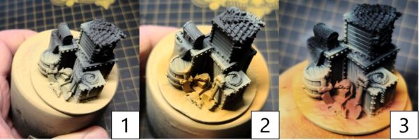 Step 3) To finish off the basing color, I add a drop of Amethyst Rose to the previous mixture and blend/airbrush this into the deepest areas and ridges of the sand. I’m careful not to add too much Amethyst Rose to the previous color—we’re looking for a nice almost rusty color here.