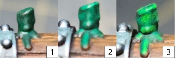 Step 2) Continue working up the color by adding a highlight of Iosan Green to raised surfaces and areas.
