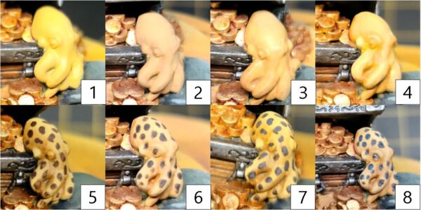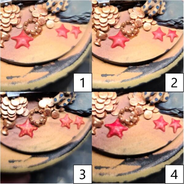 Step 3) For my first highlight, I apply Solid Gold to the raised areas and surfaces.