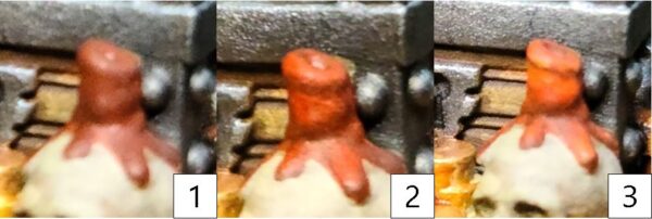 Step 3) With the wash dry, apply a highlight of Cold Steel to the raised surfaces and hard edges.