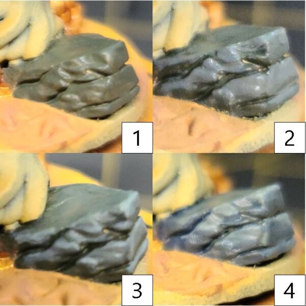 Step 4) To add some additional depth to the model, I blend Exile Blue into some of the shadows.