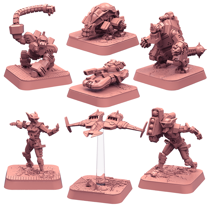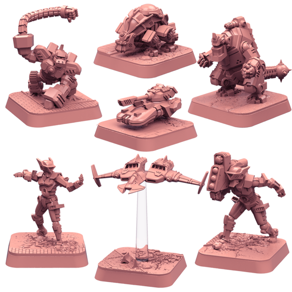 The Monsterpocalypse just got a little more dangerous! The Terrasaurs and Uber Corp International armies are now available as supported STL and LYS files as well as unsupported STLs on MyMiniFactory.com. Along with the new armies, we have also added Nova ESR, Sky Sentinel, Rogzor and Xaxor to fill out the GUARD and Planet Eaters options. And if you’re looking for an alternative flight stand for your Monsterpocalypse flying units, free centered and offset versions have been added.